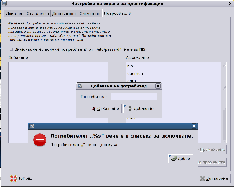 Проблем с поппълването на потребителите в GDM